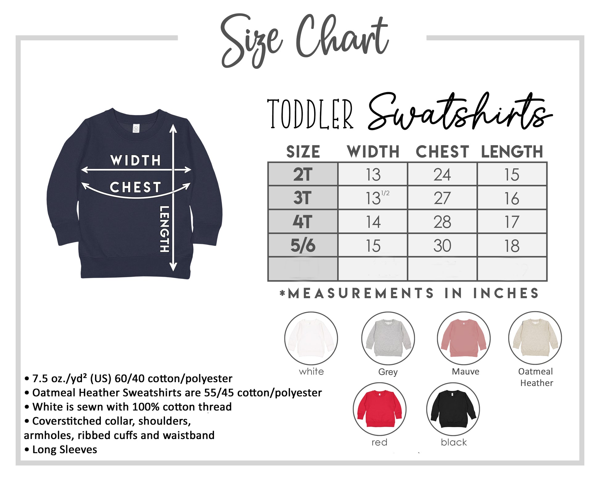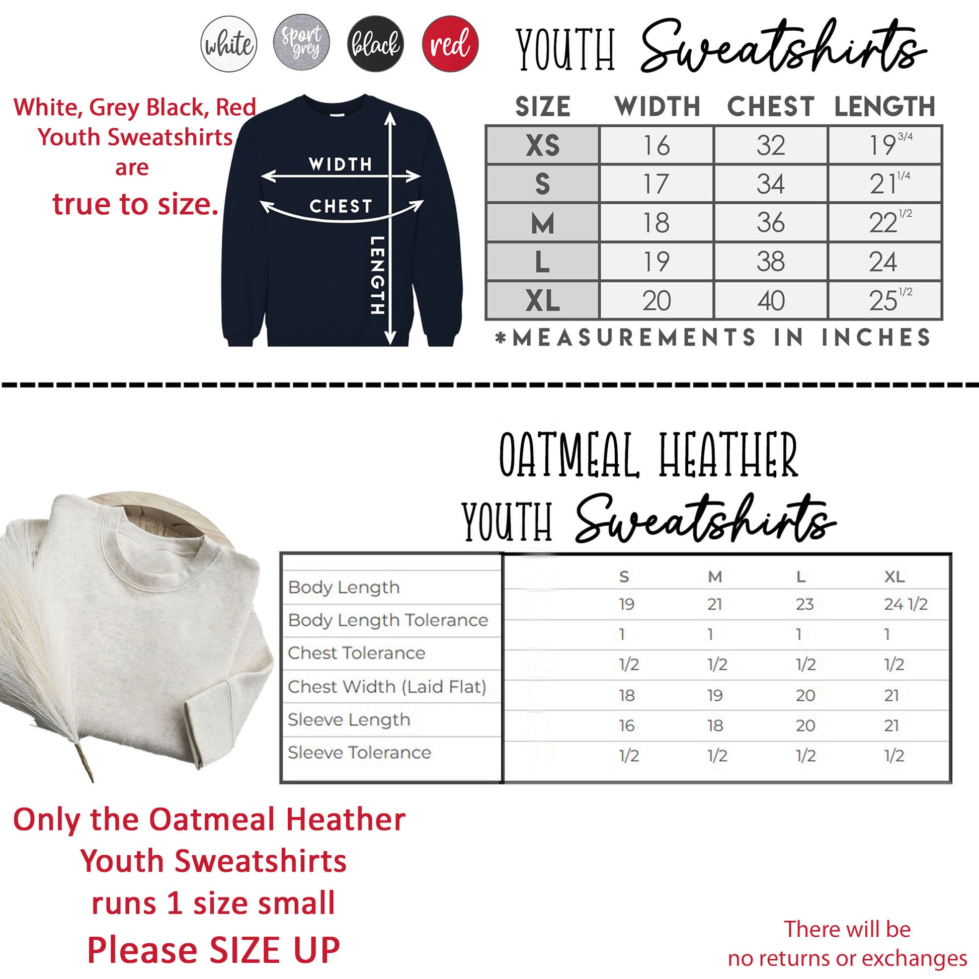 • Oatmeal Heather Color Sweatshirt is 55/45 cotton/polyester
